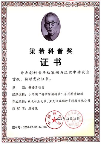 A few days ago,according to the National Forestry and Grassland Administration, theNEFUseries of popular science activities entitledLittle Raindrops“Scientist on Science” won the 9th Liang Xi Popular Science Award.