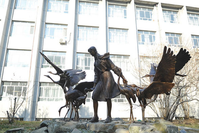 Wu Guochun, Secretary of the NEFU CPC Committee, indicated that Xu Xiujuan devoted herself to the cause of crane protection since she was 17 years old. In 1985, Xu Xiujuan went for further study at the Department of Wildlife Resources at her own expense, and completed two years’ studies within a year and a half. In 1987, she drowned seeking a lost swan in Yancheng Nature Reserve of Jiangsu Province. She was only 23 years old at that time. Secretary Wu said that the construction of Xu Xiujuan statue aimed to encourage the staff and students to carry forward the spirit of the “crane soul”, make more contributions to NEFU’s Double First Class (first class university and first class discipline) and China’s ecological civilization construction.