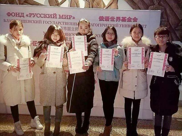 Sponsored by the Russian World Foundation and Blagoveshchensk National Normal University, this contest was an important event in the field of education and culture between China and Russia. With “Outer Space” as the theme of the contest, the students competed in areas of dramatic presentation, national knowledge, impromptu dialogue, captain speeches and song, during which public class, handicraft class and other Russian teaching activities were presented.