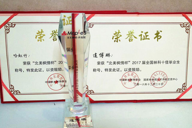 The “North American Maple Cup” National Forestry Discipline Top Ten Graduates activity was jointly held by the China Forestry Education Society and the State Forestry Administration Center for Personnel Development and Exchange. The activity began in 2010, and has been successfully held 7 times. Each year, more than 300 forestry related institutions, and more than 80,000 graduates are involved. The aim of the activity is to implement the strategy of strengthening forestry, giving special attention to the role of outstanding students as role models in order to inspire and guide students to learn about forestry, to join modern forestry construction with enthusiasm, to promote the professional development of forestry enterprises and institutions, and to further promote the employment work of graduates. This activity has been highly recognized by the majority forestry-related institutions and forestry students, and it has achieved good social response.
