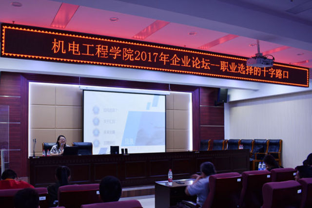 On May, 15, the College of Mechanical and Electrical Engineering successfully held the first business forumCareer Plan and Operational Strategyin the Students Activity Center in Yi Feng Yuan. The forum invitedWang Xuanting, HR director of Heilongjiang Evergrande, Zhao Zimin, HR manager of Heilongjiang Agricultural Products Group Company, and Wang Pengyu, product and regional manager of Heilongjiang Midea Marketing Center.