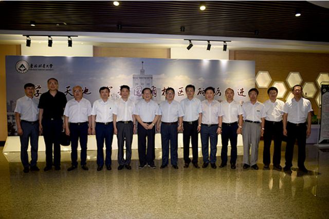 At the exhibition hall for innovation and entrepreneurship achievements, Liu Shouxin, Yangtze River Scholar, dean of the College of Materials Science and Engineering, Niu Xiaoting, director of the Institute of Classical Ming and Qing Dynasty Furniture, Guo Yanling, entrepreneurship instructor, general manager of Harbin ZIYOUZHIZAO Science & Technology Development Co., Ltd., Qiu Zhaowen, entrepreneurship instructor, general manager of Heilongjiang TUOMENG Science & Technology Co., Ltd., Cheng Peifeng, dean of the College of Civil Engineering and Fu Yujie, Yangtze River Scholar, director of the key laboratory of forest plant ecology, Ministry of Education successively introduced our achievements in scientific and technological innovation that have prospects for industrialization and the substantial effects of our service on the society.