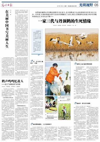 On November 4,Guangming Dailypublished a full page ofLove and Death of Red-crowned Crane and Three Generations of a Family, a report on the moving stories of alumni Xu Xiujuan and Xu Zhuo, who protected the natural ecology.