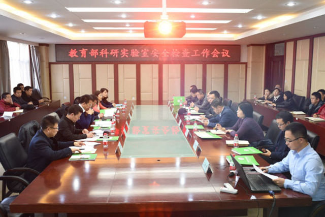 The expert team listened to the report on the laboratory safety work in the conference room, locating on the eighth floor of the Office Building, and held the on-site supervision. Vice President Zhou Hongli attended the meeting with the heads of relevant offices and the people in charge of laboratory safety.