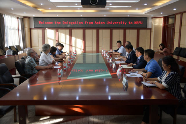 On the afternoon of August 31, Fiona Lacey, the vice president of Aston University, and John Elgi, the head of the engineering management department, came to NEFU to discuss matters on a cooperatively-run school. Vice-President Li Shunlong of NEFU received the Vice-President and her delegation in the conference room on the eighth floor of the Administration Building. The heads of the International Cooperation Office, the Academic Affairs Office, the School of Civil Engineering, the School of Economics and Management, and the College of Foreign Languages attended the conference.