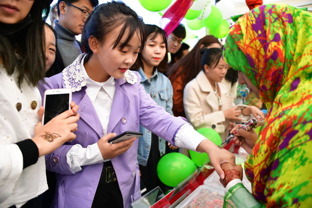 The hospitable international students not only demonstrated their country's traditional costumes and special art, but also made authentic local cuisine, and communicated with Chinese students and other international students.