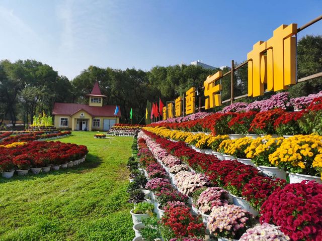 Chrysanthemum has been a traditional Chinese flower since ancient times. As a graceful and beautiful flower, it does not charm with its delicate posture, but stands out with its elegance and chastity, blooming after all other blossoms have faded away. People love it for its delicate charm, and even more for its excellent qualities of cold-resistance and frosty blooming, which also symbolize the virtues of Chinese people. This year, the Campus Construction Office selected 11 varieties of chrysanthemums in cold area, 8 varieties of ornamental chrysanthemums such as Golden Queen, Purple Jade, Green Emerald, Yellow Lover and 16 other plant varieties cultivated by the NEFU faculty, totaling more than 17,000 plants, to form a chrysanthemum-dominated autumn flower show in several regions on campus and along the road.