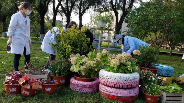 The blooming of flowers and teaching and research activities complement each other. In the spring, a sea of colorful spring and summer flowers was planted in the former coal yard; in the autumn, a splendid chrysanthemum show is set up in the region of the ice stadium, and most of the plants selected are composed of the teaching and research achievements of our faculty. The plants and flowers on display include the open field chrysanthemum, chrysanthemum in cold area, and kale studied by Professor Li Yuhua and her team of the College of Life Sciences; the North American cedar and new iris variety “NEFU No. 1” selected by Professor Wang Ling and her team ofthe College of Landscape Architecture; physocarpus amurensis, Korean boxwood and North American holly selected by the garden plant application team of the College of Landscape Architecture; 2 themed plant design works of students under the guidance of Associate Professor Yue Liran of the College of Landscape Architecture; taxus cuspidata, purple maple, green maple, purple rain birch bred by Associate Professor Zhao Xiyang and his team; new Populus alba variety “Glory No.1” created by Professor Liu Guifeng and his team; Betula schiata bred by optimizing team; chicken tree viburnum bred by Associate Professor Li Shujuan and her team; African castor oil plant collected by Professor Zheng Zhimin and his team.