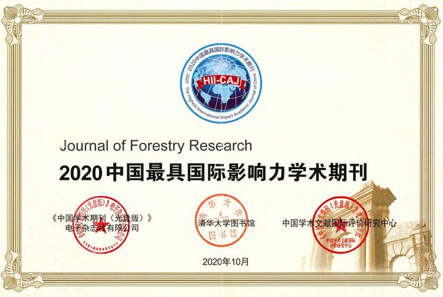 On December 17, 2020, the Annual Report for International Citation of Chinese Academic Journals in 2020, developed by the China Academic Literature International Evaluation Research Center and Tsinghua University Library and published by CNKI, officially released that the Journal of Forestry Research (English edition), JFR for short was once again selected as the Highest International Impact Academic Journal of China and ranked first among forestry journals. It was the 7th time for JFR to win the honor since 2012.