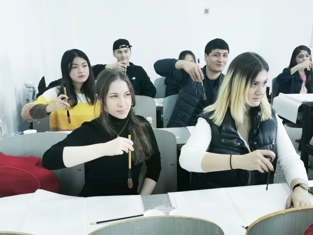 Mrs. Li Zhuoran of the Admission Office of the School of International Education and Exchanges introduced the history of Chinese traditional calligraphy, the Four Treasures of Study and the development of Chinese calligraphy to the students who were deeply impressed by the large quantity and the changeable forms of Chinese characters.