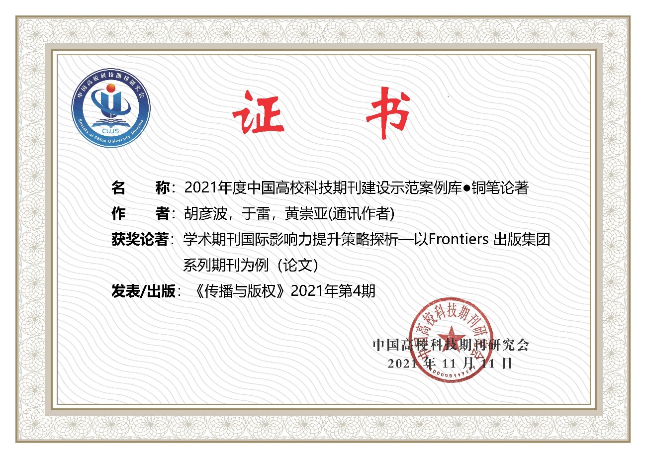 Recently, the good news of The Journal of Forestry Research (English Edition) keeps pouring in. The case charged by Editor Dr. Zhu Hong was selected as the 2021 China University Science and Technology Journal Construction Demo Case Database • Editorial Case, the monograph written by Dr. Hu Yanbo was selected as the 2021 China University Science and Technology Journal Construction Demo Case Database • Bronze Medal Monograph.