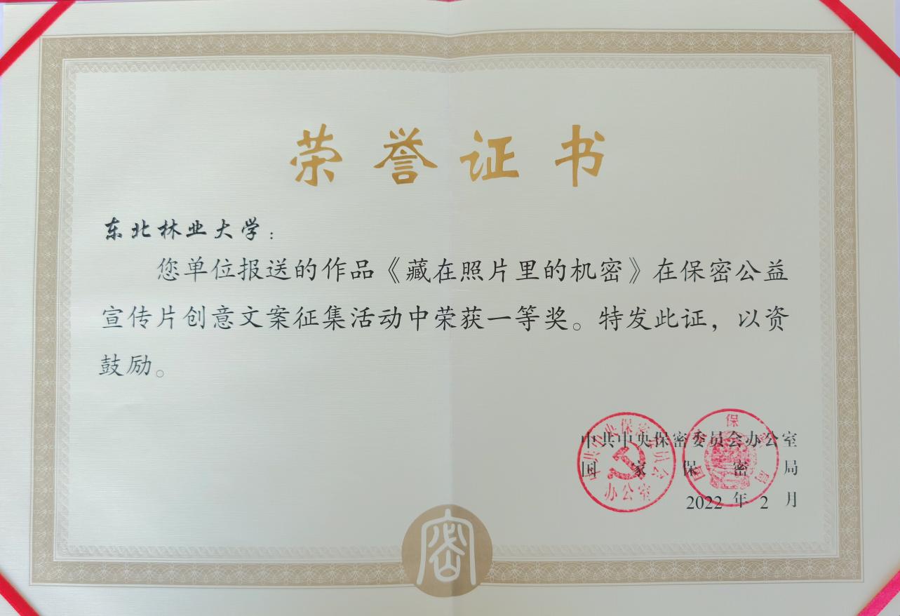 Recently, the results of the National Creative Writing Contest for PSA Films with Secrecy Themes, sponsored by the National Administration of State Secrets Protection, were announced. The work “the Secrets Hidden in the Photo” and “10 Dont’s for State Secrets Protection” from NEFU were recommended by the Administration of State Secrets Protection of Heilongjiang Province, and won the first and the second prize respectively.