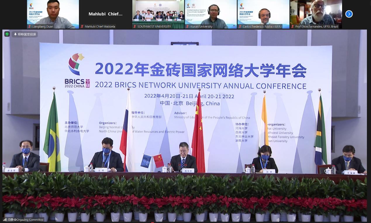 BRICS Network University was established at the 7th Summit of BRICS Leaders in July 2015. It mainly conducts exchanges and seminars in six priority areas of cooperation, such as energy, computer science and information security, BRICS research, ecology and climate change, water resources and pollution control, and economics. It is currently China's term in the rotating presidency of BRICS in 2022. From April 20th to 21st, 2022, the annual meeting of BRICS Network Universities was held in Beijing in a combination of online and offline ways. Themed by "Building a first-class partnership between universities to help the sustainable development of BRICS countries", this annual meeting sets up a main forum and parallel sub-forums around the above six priority areas of cooperation to jointly enhance higher education cooperation and sustainable development in BRICS countries. NEFU hosted the sub-forum on ecology and climate change for this annual meeting.