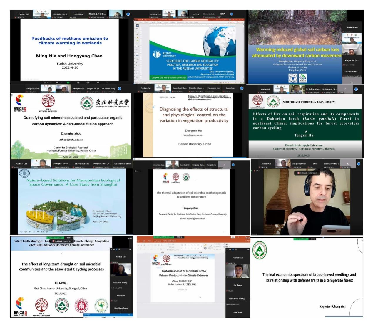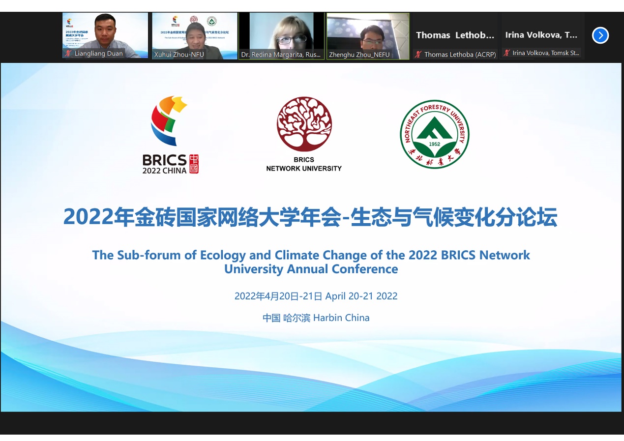 2022 BRICS Network University Annual Conference and International Symposium on “Countermeasures for Future Earth: Carbon Neutralization and Climate Change Response” ( Ecological and Climate Change Sub-forum) were successfully held online from April 20th to 21st. The forum was jointly organized NEFU College of Forestry and the International Cooperation Office. Twelve experts and scholars from nine universities including People's Friendship University of Russia, the Federal University of Rio de Janeiro, Fudan University, Zhejiang University, East China Normal University, Beijing Normal University, Hainan University, Hohai University and Northeast Forestry University gave detailed reports at the conference. More than 100 experts and scholars from members of the BRICS Network of universities from countries such as Brazil, Russia, India, China and South Africa attended the sub-forum.