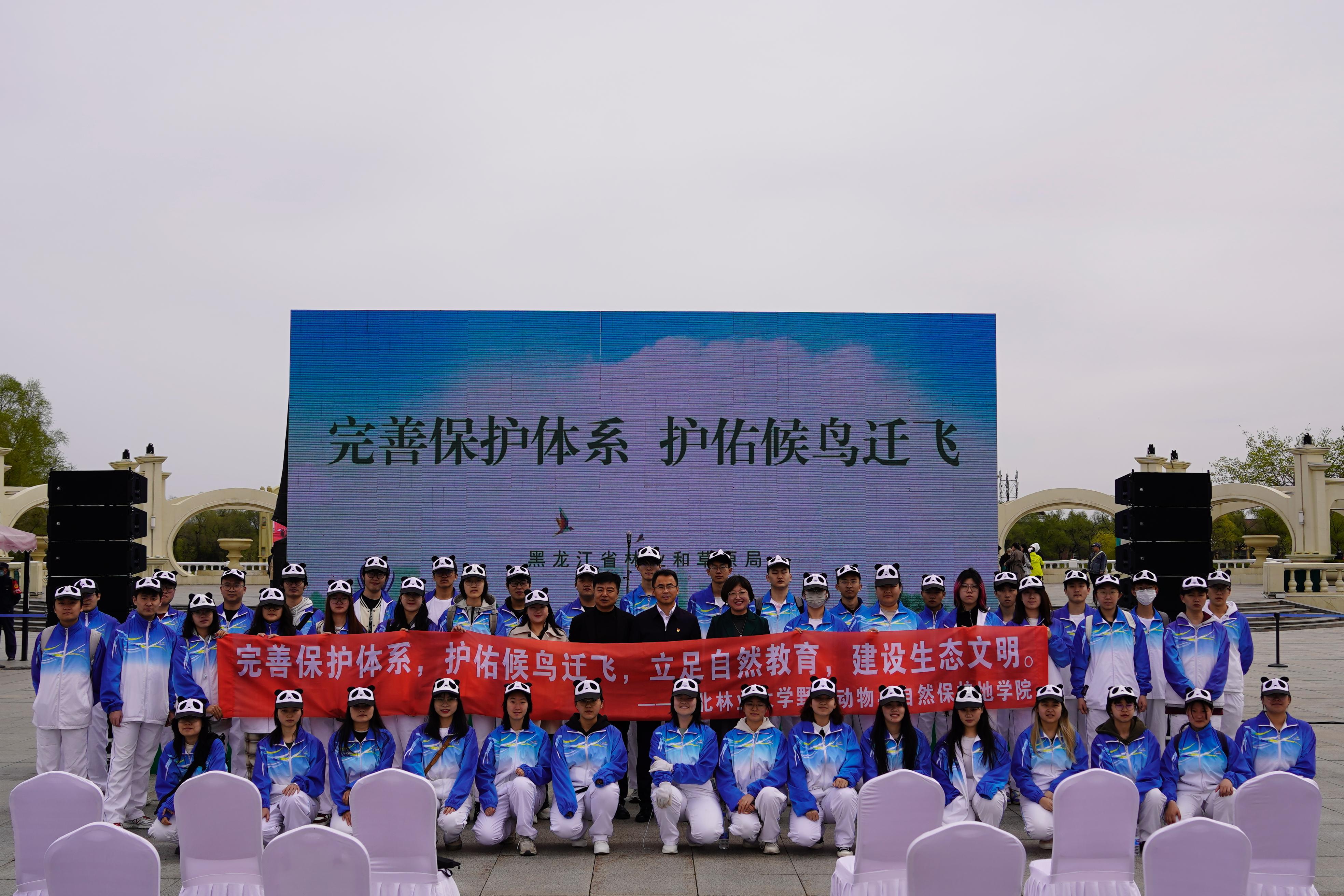 To further implement the central government’s directive to “strengthen the protection and management of critical habitats for rare migratory birds during their migration, breeding, and wintering periods” and to promote knowledge about bird and wildlife conservation, the 43rd Heilongjiang Province “Bird-Loving Week” event was launched on April 28. NEFU’s College of Wildlife and Natural Reserves co-hosted the event along with the Heilongjiang Provincial Forestry and Grassland Bureau, the Provincial Commissioner’s Office of the National Forestry and Grassland Administration, the Harbin Municipal Government, the Heilongjiang Provincial Forest Protection Activity Executive Committee, the Heilongjiang Provincial Wildlife Protection Association, Harbin Normal University, the Harbin Forestry and Grassland Bureau, the Songbei District Government, the Harbin Sun Island Scenic Area Asset Management Company, and the World Wildlife Fund (Switzerland) Beijing Representative Office. NEFU's Party Committee member and Vice President Zhang Chunlei, NEFU’s Party Secretary Wang Yongtao, and 50 student volunteers participated in the opening ceremony.