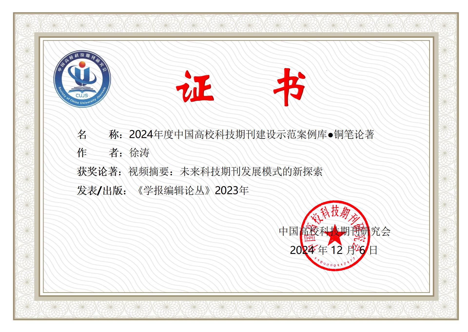 From December 15 to 18, the 28th Annual Conference of the Chinese University Scientific Journals Research Association was held in Haikou, Hainan Province. The results of the selection for the "2024 Model Case Library of Chinese University Scientific Journals" were announced during the conference. Four journals from Northeast Forestry University stood out for their exceptional quality and outstanding performance, earning a place in this prestigious collection. The Journal of Northeast Forestry University, Forestry Research (English), and Plant Research were selected as part of the "Top 100 Scientific Journals" in the "2024 Model Case Library of Chinese University Scientific Journals." Additionally, Forest Engineering and Journal of Wildlife Research were included in the "Outstanding Scientific Journals" category of the same library. Additionally, Xu Tao from the editorial team of Forestry Research (English) received the "Bronze Pen Award" in the "2024 Model Case Library of Chinese University Scientific Journals" for the research paper titled "Video Abstracts: A New Exploration in the Future Development of Scientific Journals."