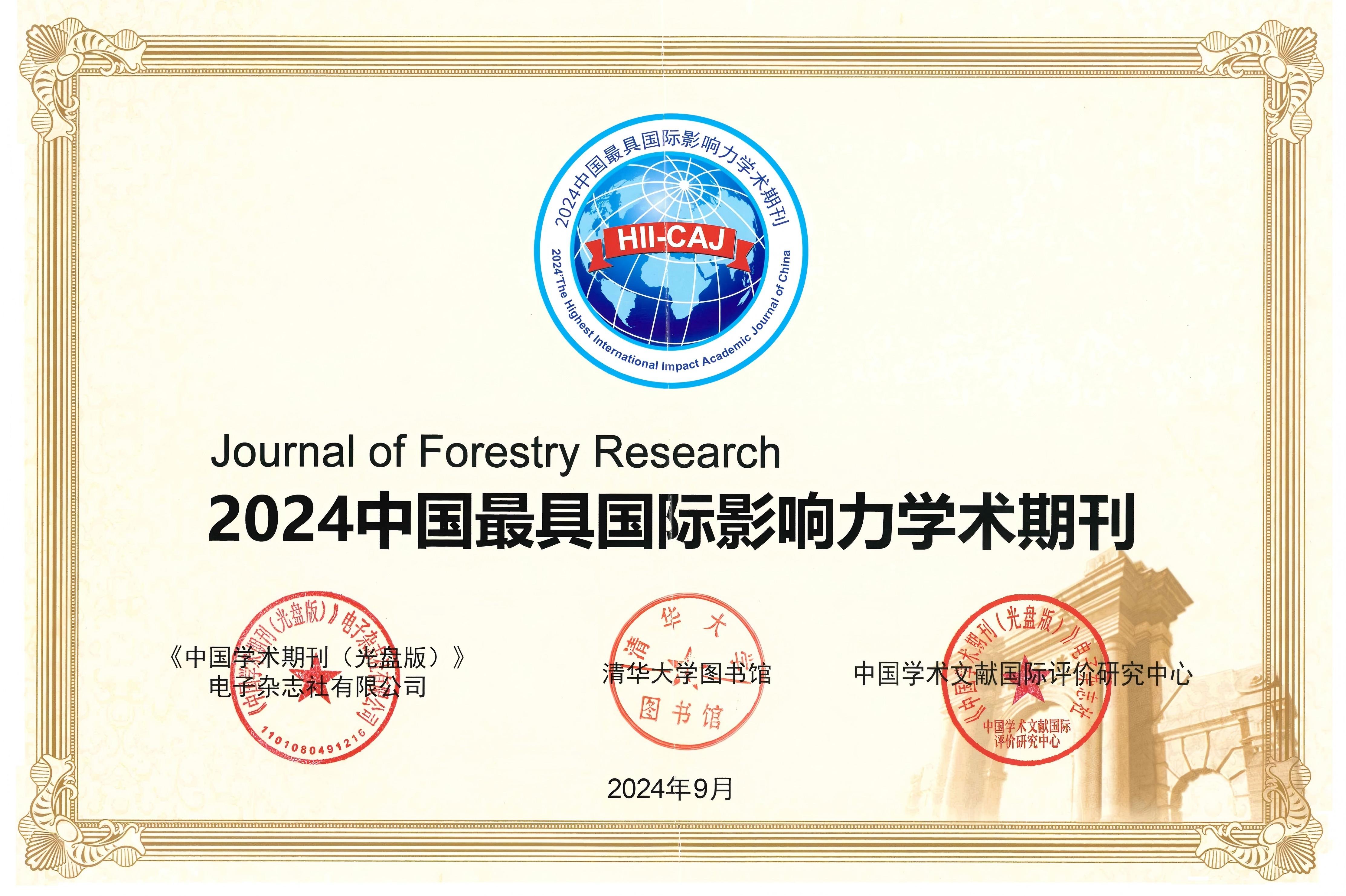 In recent years, NEFU has prioritized the development of high-quality academic journals and has been committed to establishing world-class publications. The editorial team of Forestry Research stays at the forefront of forestry research, focusing on interdisciplinary and emerging fields. The team continuously improves content quality, enhances editorial standards, expands dissemination channels, and actively increases the journal's international visibility and impact. According to the latest Journal Citation Reports (JCR) release in 2024, Forestry Research achieved an impact factor of 3.4, ranking 9th globally among forestry journals and firmly within the Q1 category.