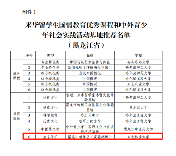 Entrusted by the Department of International Cooperation and Exchanges of the Ministry of Education, the China Education Association for International Exchange launched a nationwide call in 2024 to select the first group of Outstanding Courses for National Conditions Education for International Students in China and Social Practice Activity Bases for Chinese and Foreign Youth. Following NEFU’s application and recommendation from the Heilongjiang Provincial Department of Education, the Mao’er Mountain Teaching Area (Experimental Forest Farm, hereinafter referred to as the “Teaching Area”) of NEFU was successfully selected as one of the first 115 national Social Practice Activity Bases for Chinese and foreign youth. Additionally, the Mao’er Mountain Teaching Area was also chosen as a “Perceive China” Practice Base by the China Scholarship Council in 2024.
