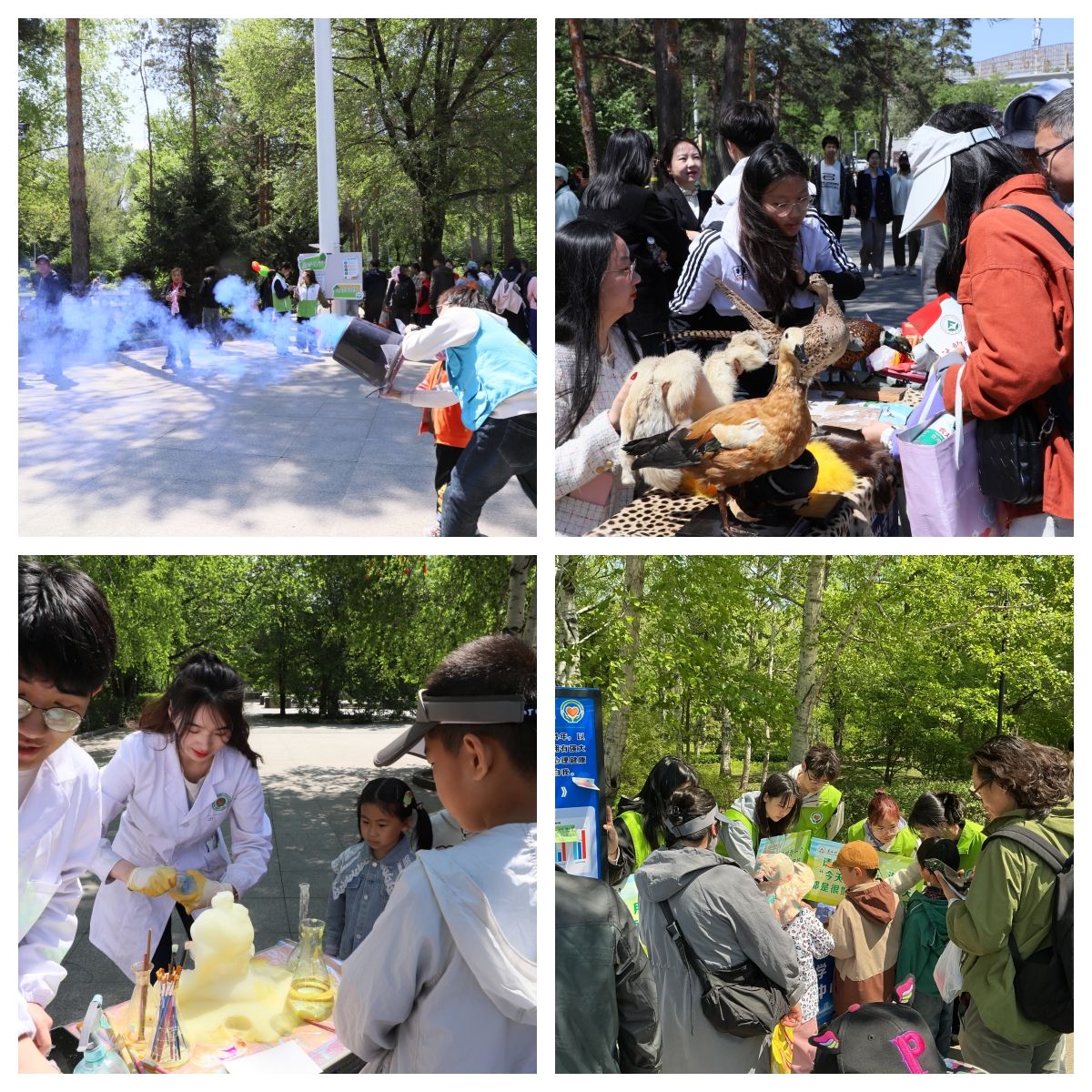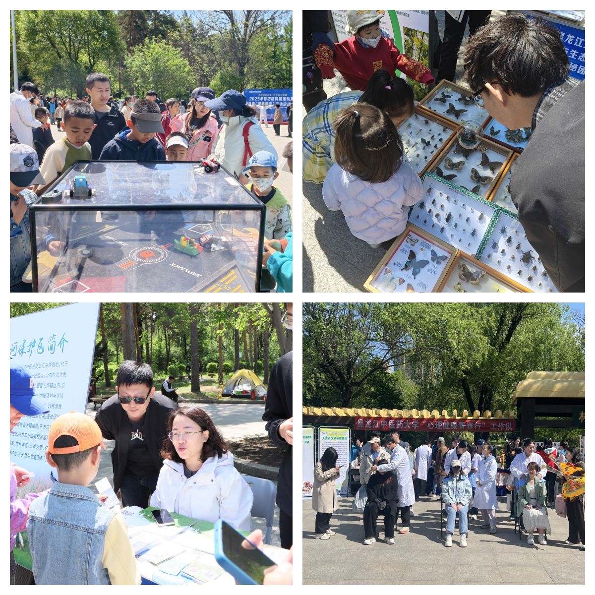 At the event site, thousands of citizens were drawn to stop and participate in nearly 40 outstanding projects, which included those focused on science popularization, interactive experiences, and exhibitions. The science popularization on natural education featured bird specimen exhibitions with avian knowledge sessions, plant specimen displays with botanical knowledge talks, “Food Safety” science outreach, and legal knowledge promotion. The interactive experiences included “Self-Care” interactive activities, insect specimen exhibitions with hands-on preparation experiences, TCM therapy demonstrations, hands-on chemistry and physics experiments, combat robot operation trials, and pressed-flower bookmark and fan making. For exhibitions, there were displays of cold-resistant chrysanthemums, ginseng medicinal materials, and alkaline-tolerant chlorella, as well as the display of “Ice Flower Porcelain,” an intangible cultural heritage craft of Heilongjiang Province, and tips and practices for reducing plastic usage.