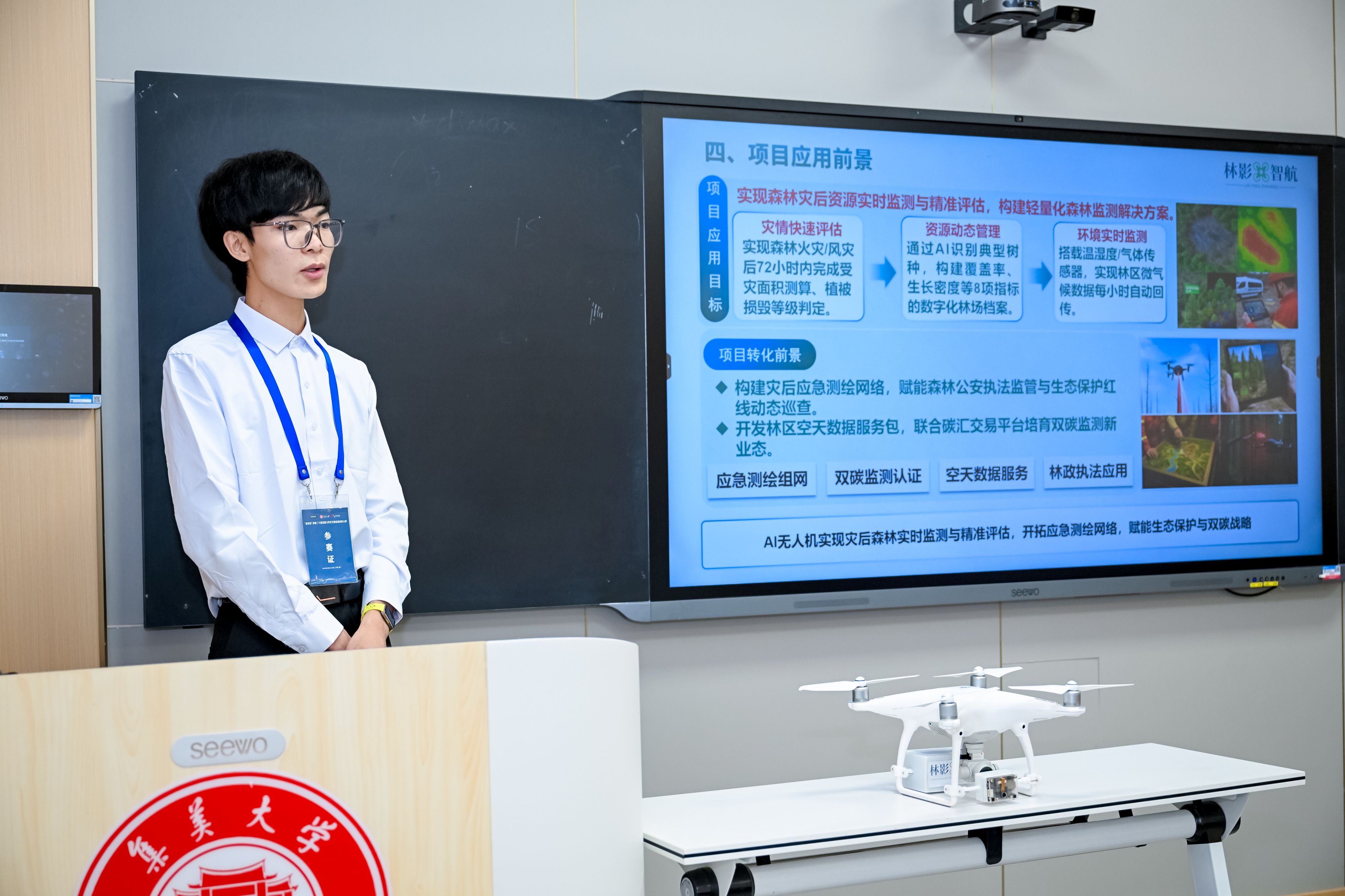 Another third-prize-winning project, “Forest Intelligence and Flight — AI-based Drone for Post-Disaster Forest Resource Detection,” focused on the special needs of forestry transportation. It integrates hyperspectral imaging and deep learning algorithms to quickly complete 3D modeling and resource assessment of forest areas following disasters such as fires or mudslides.