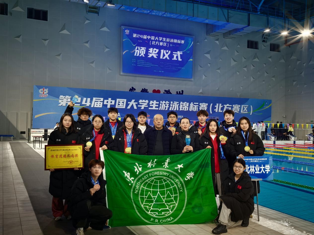 On December 10, the 24th Chinese University Swimming Championship (Northern Division) concluded successfully. In a highly competitive field, the NEFU swimming team delivered an impressive performance, securing three gold, one silver, and four bronze medals. The team placed second overall in Group A, second among women, and fourth among men. Zhong Yuan of the School of Mechanical and Electrical Engineering and Zhou Qunqi of the School of Forestry were awarded the “Outstanding Athlete” title. Liu Dan, a faculty member, received the “Outstanding Coach” honor. In addition, NEFU received the Sportsmanship Award.