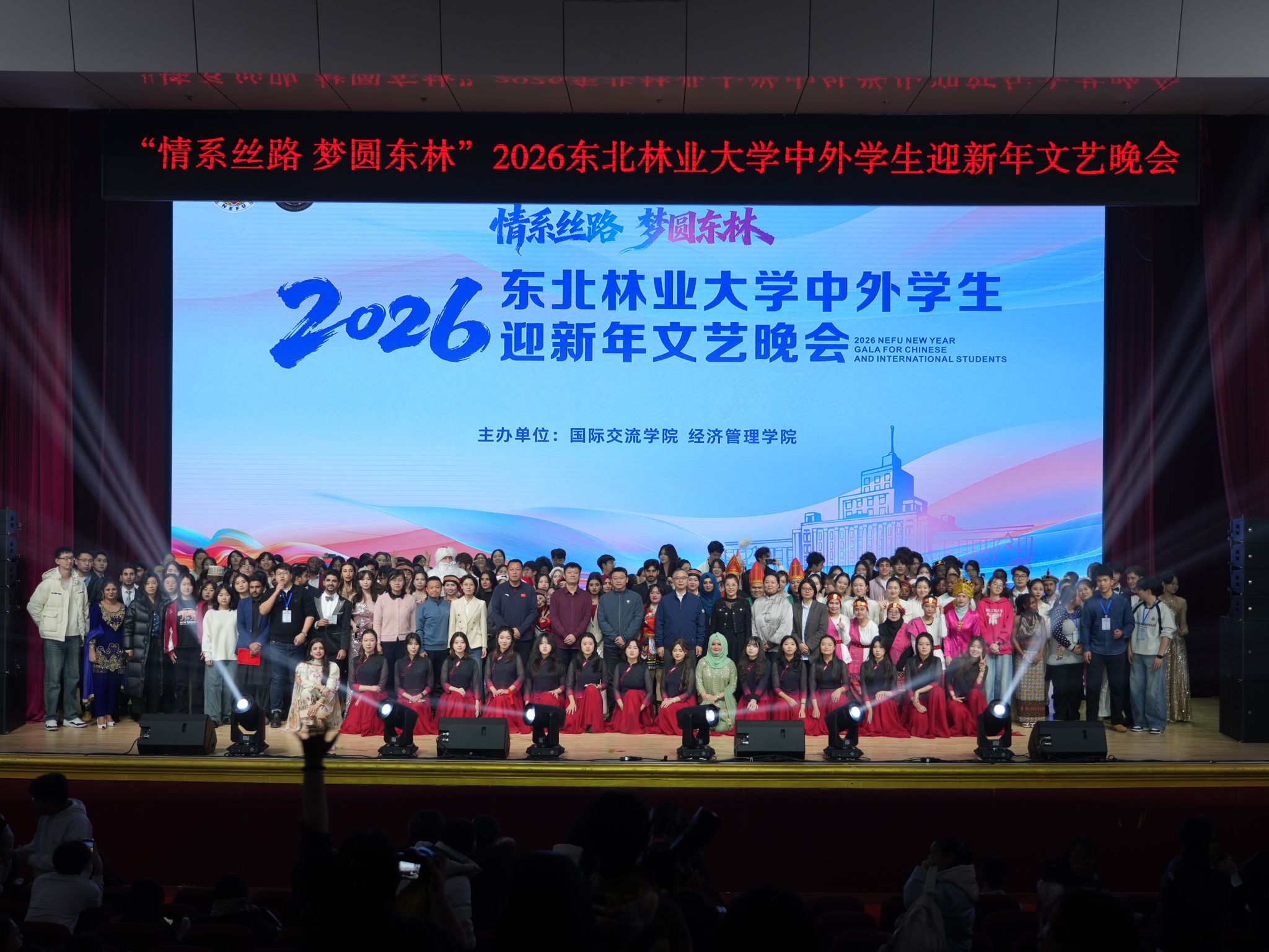 As the year drew to a close and warmth filled the winter air, students and faculty gathered to celebrate a new beginning. On the evening of December 18, the “Silk Road Dreams, Shared at NEFU” 2026 New Year Gala for Chinese and International Students of Northeast Forestry University was warmly inaugurated in the Science Auditorium. Wang Shaosong, Director of the Division of Foreign Cooperation and Exchange of the Heilongjiang Provincial Department of Education, along with heads of relevant university departments and faculty and student representatives from various schools, attended the event and enjoyed the cultural feast alongside international students from more than 20 countries, including Russia, Indonesia, and Tanzania.