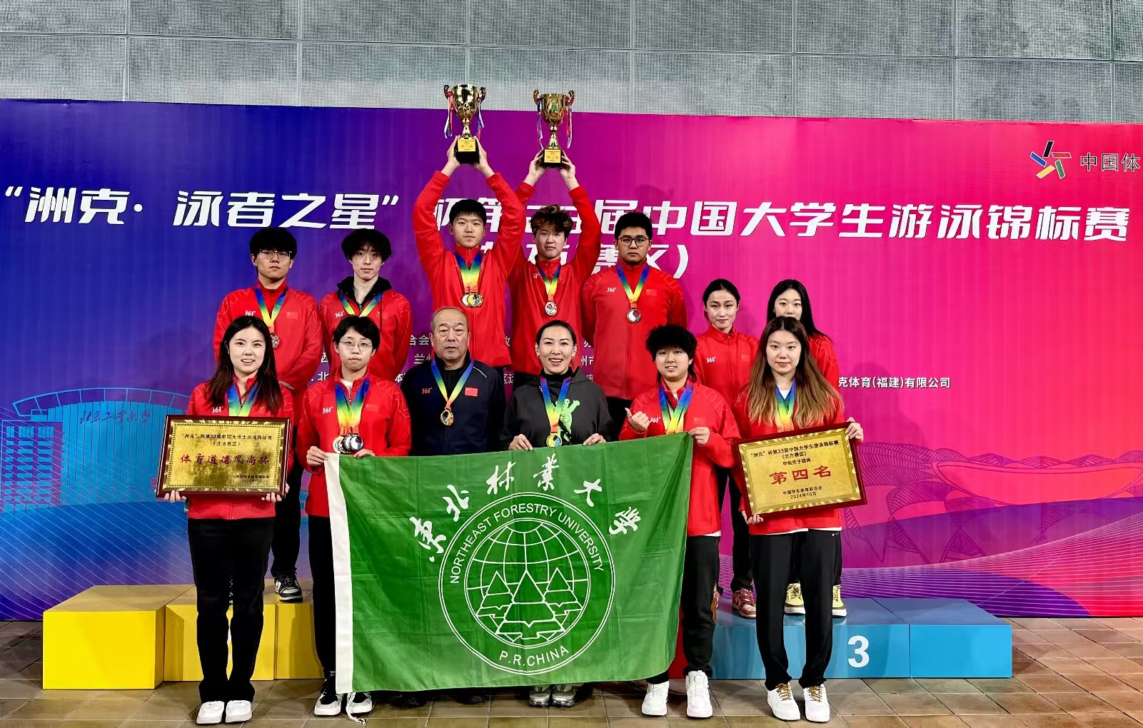 On October 26, the 23rd China University Swimming Championships (Northern Region) concluded successfully at the Baihe Swimming Pool in the Lanzhou Olympic Sports Center. NEFU sent a team of 11 athletes to the competition. After four days of intense events, the team emerged victorious, winning the Group A overall team championship, securing second place in the Group A women’s category, and achieving fourth place in the Group A men’s category. Our athletes brought home 5 gold, 6 silver, and 1 bronze medal while setting a new event record. The university was additionally honored with the Sportsmanship Award. Liu Dan, a teacher from the Physical Education Department, received the title of “Sportsmanship Award Coach.” At the same time, students Hou Yaan from Olympic College and Li Wenbo from Landscape College were named “Sportsmanship Award Athletes.”
