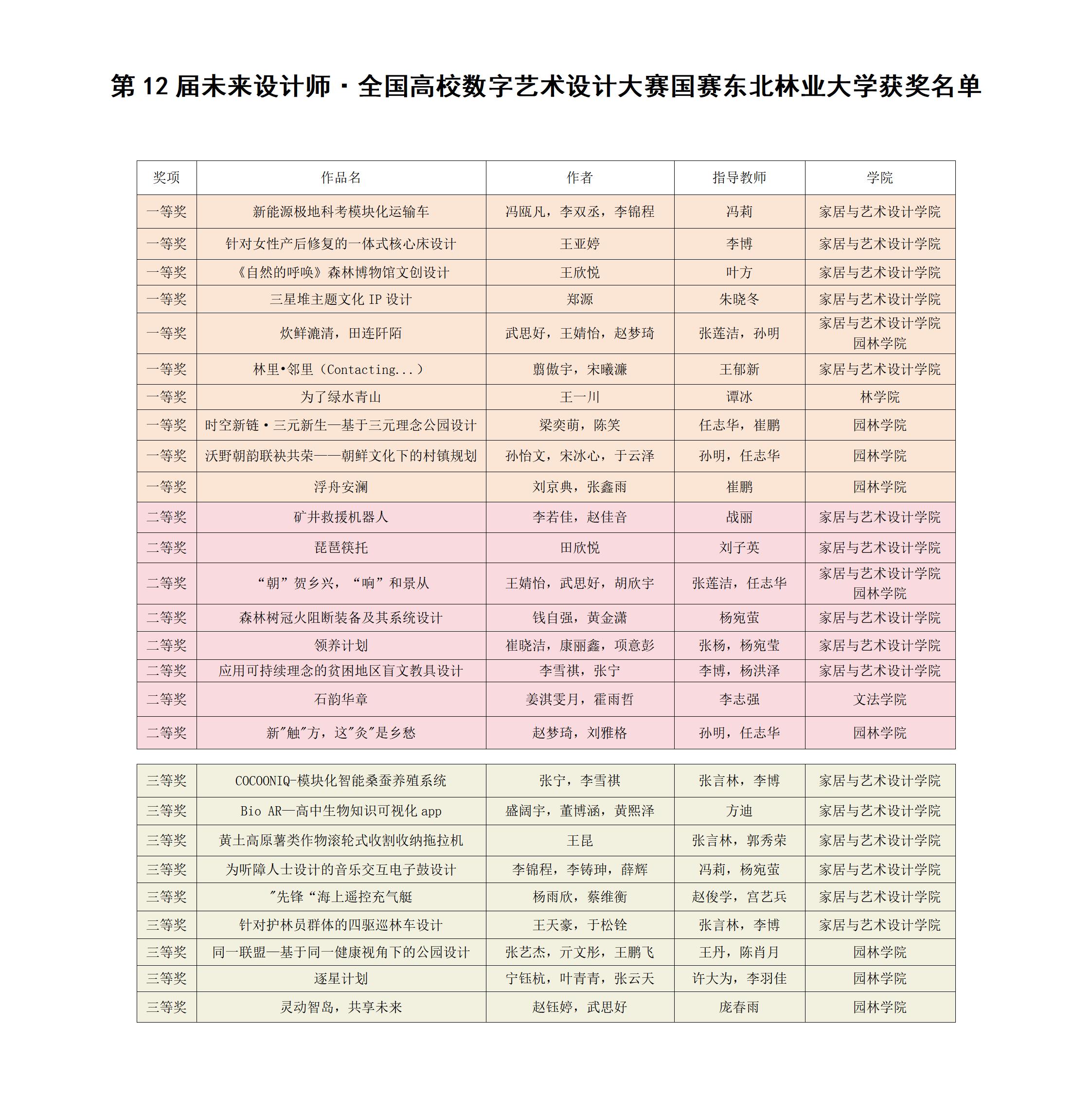 Both competitions are included in the "National College Discipline Competition Rankings" published by the China Higher Education Society under the Ministry of Education. They are regarded as essential platforms for higher education reform and innovative talent development, with broad influence across universities. NEFU has participated in these events for several consecutive years, with the School of Furniture and Art Design, the School of Landscape Architecture, and the School of Humanities and Law actively organizing training sessions and internal selections. Our students have consistently achieved outstanding results through the continuous refinement and improvement of their projects. This process has effectively enhanced students' enthusiasm for learning, improved their practical skills, and boosted their competitiveness in the job market, contributing to a steady improvement in the quality of talent development at NEFU.